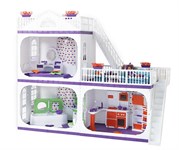 Внутренние помещения кукольного домика Огонёк выполнены в стиле "Конфетти" - в фиолетовом цвете, который поднимет настроение любой девочке. Открытые игровые зоны кукольного домика позволят девочке устанавливать мебель в любом месте комнат и открытых пространств кукольного домика, а также размещать в комнатах домика куклы или мягкие игрушки.