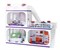 Игровой набор кукольного домика производства Московского завода пластмассовой игрушки "Огонёк" Коттедж "Конфетти" представляет собой набор деталей и элементов, из которых можно построить очень большой кукольный домик (высота до 80 см.), состоящий из трёх комнат - спальни, ванной комнаты и гостиной. Кроме этого, коттедж "Конфетти" имеет открытый балкон, на котором могут "отдыхать" куклы, а также плоскую крышу, на которой можно разместить цветник. При сборке кукольного домика ребёнок может сам выбрать и определить расположение его комнат.