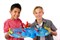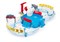 Водный трек собран и наполнен водой, зрители собрались и жаждут зрелища! Опустите с помощью подъёмного крана роболодочку micro Boats в воду и попробуйте её поймать огромной акульей пастью!
