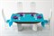 Это столовая с большим столом, за которым смогут собираться все очаровательные жительницы домика и обсуждать всё произошедшее с ними за день. Богатое сочетание белого и бирюзового цвета и яркая фиолетовая посуда хорошо впишутся в интерьер коттеджа "Конфетти". Стол имеет тёмную столешницу, на которой изысканно смотрится посуда. В набор входит стол, стулья и набор посуды для 4-х персон. Девочка с удовольствием приготовит праздничный ужин для своих кукол и, усадив их за стол, научит их правилам этикета и вежливого поведения за столом.