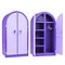 Получив в подарок функциональный шкаф, дети смогут не только украсить интерьер кукольного домика, но и развесить в нём платья кукол и разложить по полочкам другие наряды и постельные принадлежности. Верхняя часть шкафа имеет форму арки, яркий фиолетовый цвет радует глаз и прекрасно сочетается с другой мебелью. Дверки шкафа украшены декоративными узорами и имеют ручки.