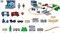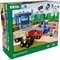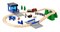 В набор деревянной железной дороги БРИО входит паровозик на батарейках с вагончиком и грузом, переезд со шлагбаумами, здание полицейского участка с площадкой для остановки поезда, полицейский автобус с открывающейся крышей и проблесковыми маячками с сиреной, в который можно сажать человечков, полицейский мотоцикл, стоп-сигнал, ограждения, и другие аксессуары. У фигурок полицейского и вора сгибаются ручки и ножки, их можно сажать в автомобиль и вкладывать в руки различные предметы.