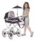 В составе набора: коляска для кукол (классическая люлька-качалка), в тёмно синем цвете. С сумочкой на ручку и зонтиком. У коляски прорезиненные колеса, металлический каркас, под люлькой расположена удобная сетка для вещей. Размер коляски (см): 42 x 68 x 81