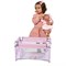 Великолепная дизайнерская кроватка, идеальнор подходит для кукол фирмы Munecas Antonio Juan. Серия Мария выполнена из текстиля розовой расцветки, с мелким нежным рисунком с цветами, с изысканной отделкой кружевом. Основной рисунок - девочка Мария на кочелях.