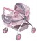 В составе набора: коляска для кукол (классическая люлька-качалка), в серо-розовом цвете. С сумочкой на ручку и подушечкой. У коляски прорезиненные колеса, металлический каркас, под люлькой расположена удобная сетка для вещей. Размер коляски (см): 35 x 51 x 56