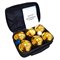 В игровой набор Петанк входят 6 шаров золотого цвета (шары помечены разным количеством полосок), маленький деревянный шар "кошонет" и прибор для измерения расстояния. Элементы для игры Петанк упакованы в удобный кейс, закрывающийся на молнию.
