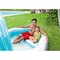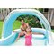 Модель состоит из надувного бассейна, в который встроен надувной диван для большего комфорта. А также к съёмному навесу можно подключить садовый шланг и наслаждаться струйками воды из разбрызгивателя.