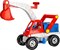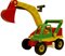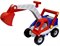 Игрушечный экскаватор выполнен из яркой, красочной пластмассы. У экскаватора вращается кабина, поднимается и опускается стрела с ковшом. Ковшом можно зачерпнуть груз. Экскаватор перемещается на больших колёсах.