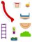 В игровой набор входит мебель для домиков деревянной железной дороги БРИО и элементы горки для детской игровой площадки. Количество элементов - 10