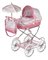 Великолепная дизайнерская коляска, идеально подходит для кукол фирмы Munecas Antonio Juan. Серия "Даниэла" выполнена из текстиля двух основных расцветок: розового и молочно белого с нежным рисунком. С изысканной отделкой кружевом, бантами и цветами. Коляска подходит для кукол высотой 30-50 см.