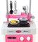 Игровой набор «Carmen» №4 с варочной панелью и духовым шкафом состоит из одного модуля, оборудованного световыми и звуковыми эффектами. На панели расположено 4 кнопки. Две кнопки включают конфорки - загораются красные лампочки. Две – для включения звука имитации работы вытяжки и проигрывания мелодий.