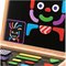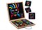 Магнитная доска c набором ярких геометрических форм на магнитах от Djeco представляет собой крепкий складывающийся деревянный чемоданчик, внутри которого находятся металлическое поле и деревянные фигуры на магнитах. Детям будет интересно перебирать фигурки разных форм и цветов. Входящие в состав набора карточки с примерами возможных картинок помогут ребёнку быстро понять принципы игры. Все детали хорошо крепятся к поверхности доски при помощи магнитов. В компактном деревянном чемоданчике можно хранить все детали, у него удобные ручки и есть замочек, поэтому его можно брать с собой.