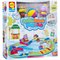 В состав игрового набора "Пляжная вечеринка" от бренда Alex входит плавающий островок в виде бассейна с трамплином и горкой, пляжные лежаки, "надувной" матрац, спасательные круги для плавания, мяч, будочка мороженщика, зонт, а так же резиновые игрушки-брызгалки Кошечка и Обезьянка, резиновый мяч и удобная сетка для хранения всех деталей. Купаясь в ванной, ребёнок может устроить целый небольшой курорт для кошечки и обезьянки, и погрузиться в атмосферу пляжной вечеринки! Детали из мягкого пластика отлично держатся на воде и прилепляются к стене ванной мокрой стороной.