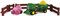 На выбор один из трех: фермерская машинка с прицепом и лошадка на колесиках, комбайн с прицепом и свинка на колесиках, трактор с прицепом и коровка на колесиках. А лучше собери их все и устрой настоящую ферму дома!