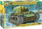 Опытный экземпляр нового танка был изготовлен на Ленинградском Кировском заводе (ЛЗК) в августе 1939 года, а в феврале 1940 там же началось серийное производство танков КВ. КВ был подлинно новаторской конструкцией, воплотившей в себе самые передовые идеи: индивидуальную торсионную подвеску, надежное противоснарядное бронирование, дизельный двигатель и мощное 76-мм универсальное орудие Л-11. По отдельности эти решения неоднократно реализовывались ранее, но КВ-1 был первой боевой машиной, воплотившей в себе их комбинацию. Количество деталей: 243 Длина модели (см): 19