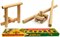 Городки - старинная русская игра, суть которой состоит в том, чтобы бросками бит выбить из площадки (города) поочередно (по две биты в очередь) определенное количество различных фигур, составленных из городков. Победителем считается игрок или команда, затратившие на выбивание фигур наименьшее количество бит. В состав данного набора входит сразу 10 чурок и 2 биты. Поэтому одновременно можно провести сразу 2 игры. Вид фигур, которые используются при игре и их последовательность, приведены на коробке.