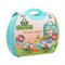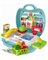 Набор выполнен в виде чемоданчика с ручкой, заполненного всеми необходимым аксессуарами для игры, от пластмассовых продуктов для продажи до кассового аппарата и игрушечных денег. Для игры чемоданчик открывается и превращается в прилавок с помощью двух прикрепляемых по бокам панелей, которые находятся внутри. С помощью наклеек, которые входят в комплект, маленький продавец сам может оформить свой мини-супермаркет. По окончанию игры набор легко складывается в чемоданчик, который можно взять с собой (есть ручка для переноски).
