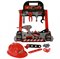 В набор Механик мини "Тачки" входит самый необходимый инструмент для юного механика, украшенный тематическими изображениями по мотивам знаменитого мультипликационного фильма "Тачки". Весь инструмент компактно размещён на инструментальной стойке, которая имеет колёсики для удобной транспортировки по комнате. Ребёнок сам сможет самостоятельно прикрутить или открутить эти колёса, а также крючки для размещения инструментов, входящих в набор. Сам верстак оснащен тисками и подъемным крюком, который приводится в движение ручным механизмом. В комплекте имеется гаечный ключ, отвертка, пассатижи, молоток, каска, 4 винта, 4 гайки, 6 соединительных элементов. Особенность набора - электронный шуруповёрт на батарейках. С помощью шуруповёрта можно легко откручивать и прикручивать к столешнице винты, а также присоединять пластины.