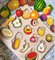 Многослойная рамка-вкладыш. Вынув верхние вкладыши, на которых изображены целые фрукты, можно увидеть, как они выглядит внутри. Внутренние вкладыши также вынимаются. Для того, чтобы вкладыши было удобно вынимать, выполнены специальные отверстия для пальца.