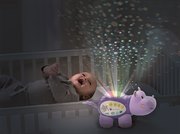 Милый фиолетовый Бегемот от VTECH одновременно является ночником-проектором и игрушкой. Днём это забавный зверёк, а ночью - проектор, создающий на потолке и стенах волшебные проекции узоров звездного неба. Детский проектор VTECH особенно будет полезен, если у ребёнка есть страх темноты и проблемы с засыпанием. Успокаивающие мелодии и волшебные проекции на потолке и стенах успокоят и настроят на спокойный сон. Помимо проекции, игрушка умеет проигрывать успокаивающие звуки природы,14 убаюкивающих мелодий и воспроизводить 7 колыбельных стихов. Игрушка оснащена функцией автоматического отключения через 15, 30 или 45 минут. Работает от двух батареек тип АА.
