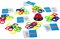 Как играть: Выгладывайте по одной карточек с заданием в центр стола и одновременно начинайте собирать кольца и треугольники так, как нарисовано на картинке. Первый собравший нажмает на звонок и забирает карточку задания себе. В каждом раунде игроки соревнуются, кто правильно выполнит задание и соберет наибольшее количество карточек.