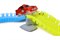 Разноцветные элементы трека соединяются между собой, создавая причудливую гоночную трассу практически любой конфигурации. Машинка, входящая в комплект набора, может сама двигаться по треку.
