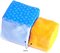 - Кубик 8х8 см из х/б ткани, пленки, плащевки, трикотажа и меха, на одной их граней которого есть пуговка под сеткой