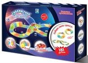 Набор «Большое путешествие» из серии «Гибкий трек» подарит бесконечные часы веселья не только детям, но и взрослым. В этот набор входит множество деталей для постройки трассы, гибкий туннель, мост, а также машинка-джип с пятью светодиодами. Всего в наборе 181 деталь, из которых можно строить и перестраивать дорогу для машин просто бесконечно! Разноцветные элементы трека соединяются между собой, создавая причудливую гоночную трассу практически любой конфигурации. По желанию ребёнка трасса может поворачивать и петлять в разные стороны, быть выпуклой или вогнутой, а можно вообще “закольцевать” её, заставив машинку ездить внутри.