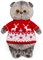 Кот Басик в свитере с оленями. Его тёплый вязанный свитер красно-белого цвета с классическим принтом в виде оленей не оставит Басика незамеченным среди других плюшевых игрушек.