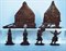 В набор солдатиков "Половецкий стан" входят кибитки вежи - 2 шт., каменные половецкие "бабы" - 2 шт., шаман с бубном - 1 шт., пляшущая девушка - 1 шт.