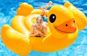 Купание с надувным плотом "Большая жёлтая утка" ИНТЕКС 56286 понравится не только детям, но и взрослым. Плот жёлтого цвета выполнен в виде уточки и предназначается для плавания в бассейне. Длина плота - 221 см, что позволит загорать на ней в лежачем положении, а наличие спинки в виде головы утки позволит принять и сидячее положение. Большой и вместительный, плот позволяет с комфортом разместиться даже нескольким людям одновременно. Надувной плот-утка имеет две удобные пластиковые ручки, за которые можно держаться, чтобы не соскользнуть в воду.