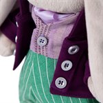 Зайка Ми кавалер в элегантном костюме и шляпе на боку от BUDI BASA - это хороший друг знаменитого кота Басика. Этот зайчик-мальчик Ми станет достойной парой для любой из плюшевых барышень в коллекции БУДИ БАСА. Сегодня Зайка Ми явно много времени провёл перед зеркалом. Мягкий плюшевый зайка нарядился в романтичную сиреневую блузу, бриджи в зелёную полоску и дополнил наряд элегантным баклажановым жакетом. Чтобы подчёркнуть свою модность и миловидность, зайка надел шляпку-котелок и атласный платок жемчужно-розового цвета. Шляпка на падает потому что прикреплена к игрушке аккуратным стежком. Вся остальная одежда легко снимается с игрушки.