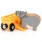 В состав набора входит грузовой вагон деревянной железной дороги БРИО и фигурка слона. Слона можно сажать в вагон. У фигурки слона поворачивается голова. У грузового вагона открывается дверка/сходня.