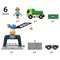 Дополнительный элемент для деревянной железной дороги, использующей поезда БРИО, работающие по технологии Smart Tech. Подъёмный кран БРИО может вращаться на 360 градусов, кран оснащен магнитным крюком и может разгружать и загружать вагоны и грузовые автомобили. Для подъезда грузового транспорта под краном предусмотрены железнодорожные и автомобильные подъездные пути.