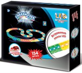 Набор "Гибкий трек" со светодиодными лампами подарит бесконечные часы веселья не только детям, но и взрослым. Главной отличительной особенностью набора от других наборов "Гибкого трека" является то, что 31 деталь из 154-х имеет встроенную LED подсветку. В машинку из набора также встроено 3 светодиода. Сама трасса люминесцентная и светится в темноте. Все детали любого набора из серии "Гибкий трек" совместимы и могут дополнять друг друга. Количество деталей в наборе: 154