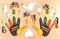 Вытащите все вкладыши из доски, перевернув доску, и разложите их на столе. Найдите фигурки, где птенцы помогают маме. Обсудите, чем занят каждый из них. На какой цифре каждый сидит? Какой пальчик соответствует по цвету этой цифре? Как он называется? Предложите ребенку найти все эти пальчки на своих ручках и помогите ему разложить вкладыши на доске. Повторите, как называется каждый пальчик. Сколько пальчиков на одной ладошке и на двух вместе? С помощью бизиборда "Сорока-белобока" можно придумать много развивающих занятий!