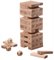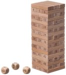 Как играть: Постройте башню из деревянных блоков, где каждый этаж состоит из трех блоков, расположенных друг на друге. Должно получиться 18 этажей. Блоки каждого последующего этажа размещены перпендикулярно блокам предыдущего этажа. Задача игроков заключается в том, чтобы извлечь один блок из любого уровня башни за исключением самого верхнего, и разместить на крыше конструкции таким образом, чтобы можно было настроить еще один этаж. В каждый свой ход игроки по очереди бросают игральные кости. Извлечь нужно будет именно тот брусок, цифры которого выпали на костях. Если же в башне брусок с выпавшими цифрами отсутствует, придется бросить кости еще раз. Игра заканчивается в случае падения башни. Проигрывает игрок, последним вытащивший блок перед обрушением конструкции.