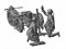 Набор деталей из пластмассы для сборки 2-х фигур солдатиков и 1 мотоцикла с минометом.