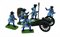 Набор деталей из пластмассы для сборки 5-ти неокрашенных орудий и 36 фигурок солдатиков.