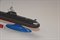 Набор деталей из пластмассы для сборки одной модели подводной лодки.