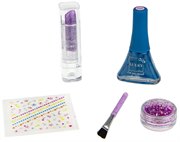 С большим набором Дизайнер-Сет от Lukky девочка сможет создавать ультрамодные дизайны ногтей и красивый макияж! В набор входят цветной лак, очаровательные наклейки на ногти, блёстки, губная помада красивого фиолетового оттенка и кисточка. Создавать клёвые образы будет очень просто! Вся косметика Lukky имеет безопасные составы. Лак удаляется с ноготков словно пленка, без применения специальных химических жидкостей, а помаду легко смыть обычной водой.
